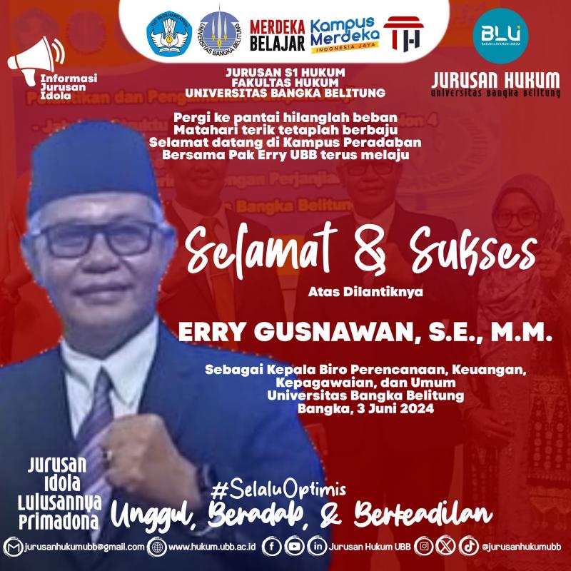 SELAMAT DAN SUKSES! ERRY GUSNAWAN DILANTIK SEBAGAI KEPALA BPKKU UBB YANG ..
